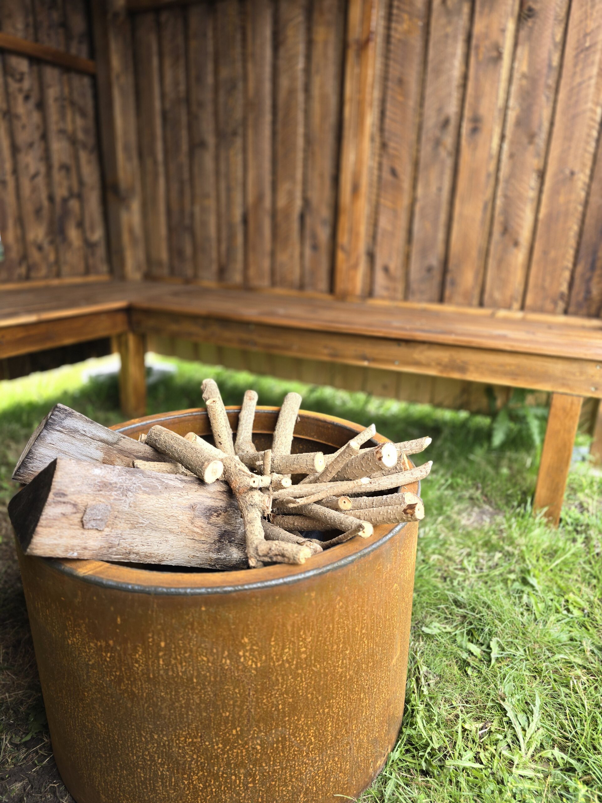 Alle bålhytter er praktisk indrettet med bænke langs hyttens indvendige sider. På den måde har du og familien altid en tør siddeplads, når I vil lave bål og hygge udenfor.