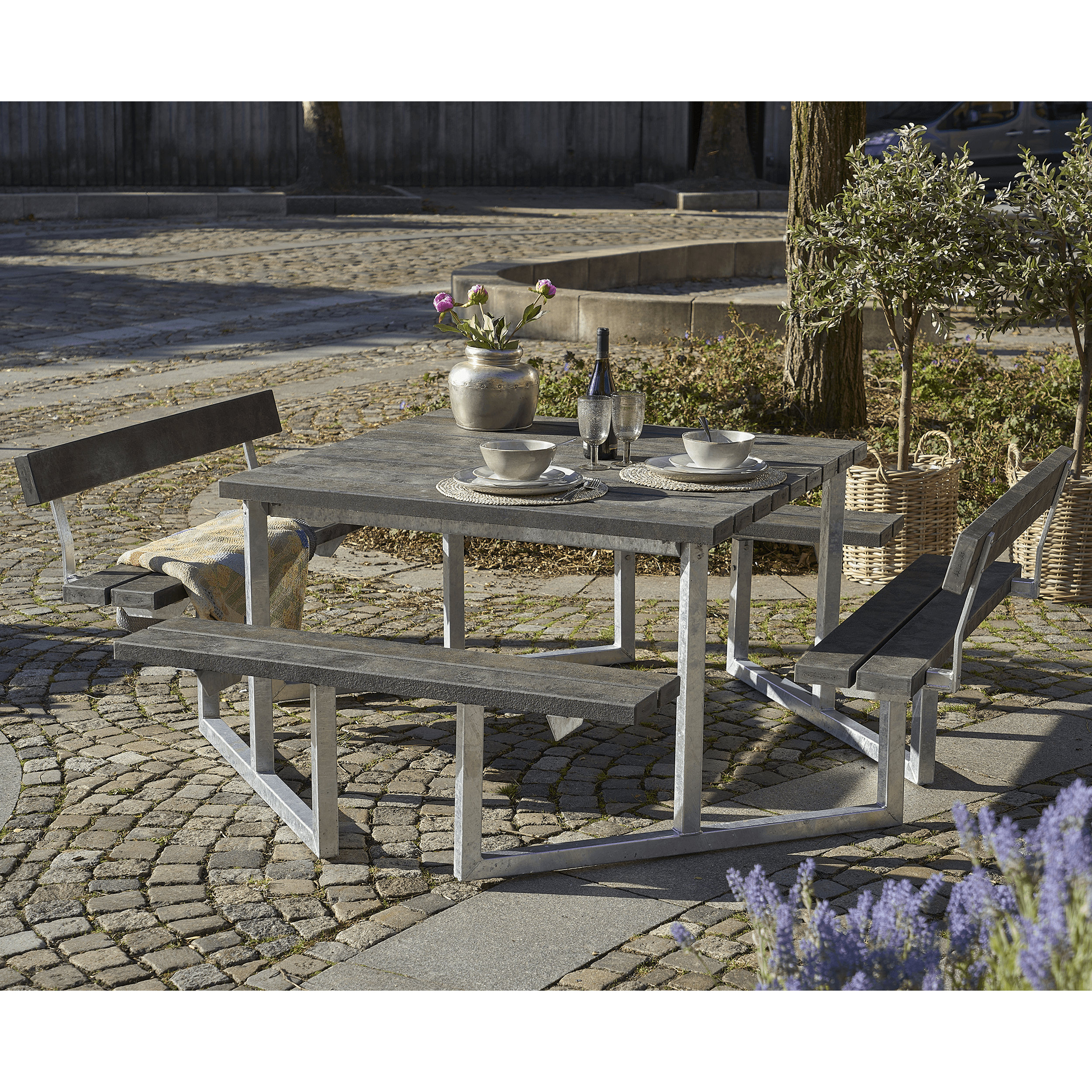 Vi har fortolket på det klassiske bord- og bænkesæt og kan her præsentere dens rummelige og mere moderne storesøster – Twist bord-/bænkesæt. Her er der gjort plads til mange og tænkt i gennemførte detaljer, således at det urbane, rå look og funktionaliteten går op i en højere enhed.